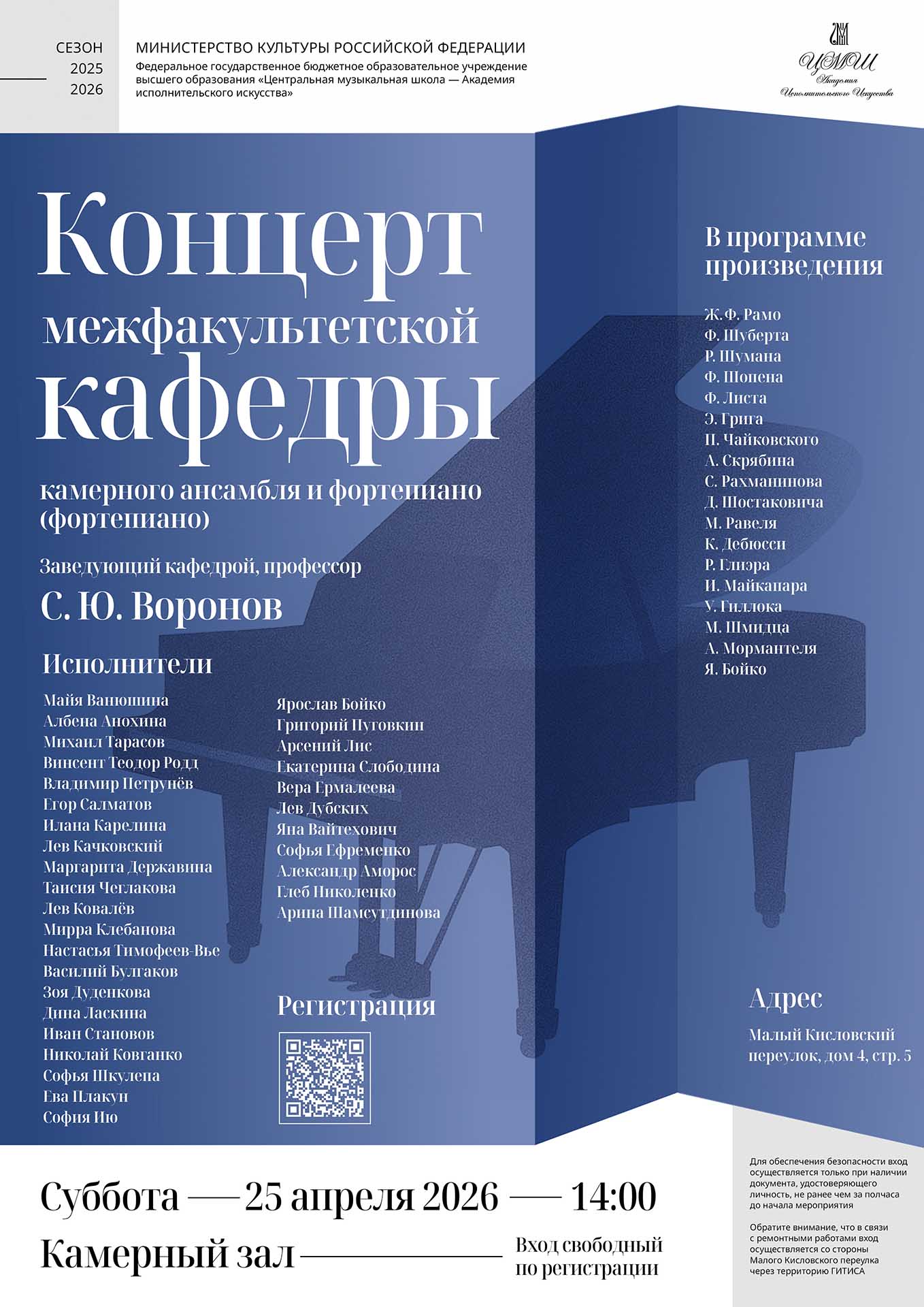 Концерт межфакультетской кафедры камерного ансамбля и фортепиано Заведующий кафедрой, профессор С.Ю. Воронов
