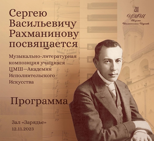 Концерт в МКЗ Зарядье Музыкально-литературная композиция Сергею Васильевичу Рахманинову посвящается
